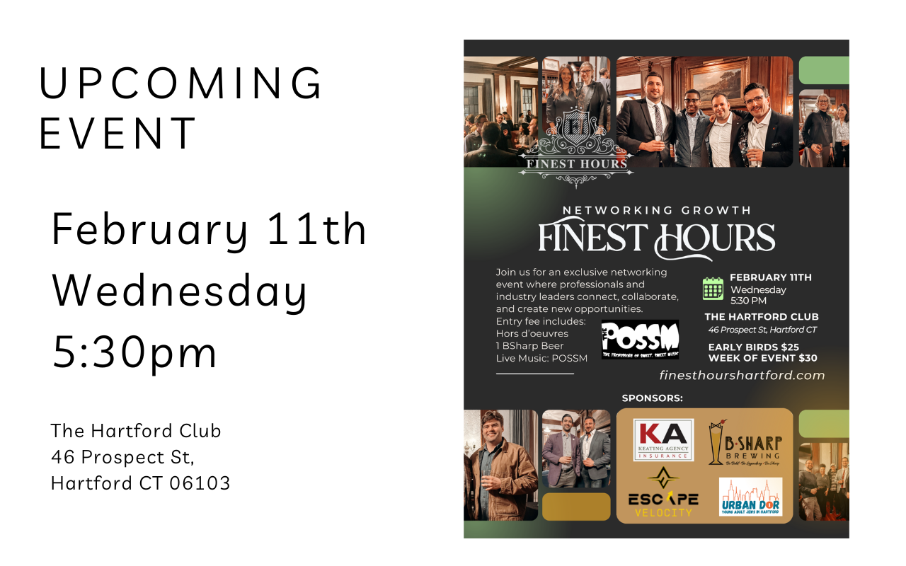 Attending a Finest Hours event at the Hartford Club is a cut above typical happy hours in Hartford. Not only will you enjoy some great food, drink, entertainment and company, but you will also be supporting a great local charity. We couldn’t think of a finer way to spend your valuable time after a hard day's work!